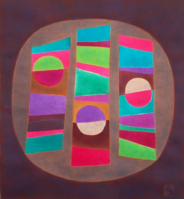 P007a Trois étendards - Three standards, 1989, aquarelle, 38 x 36 cm