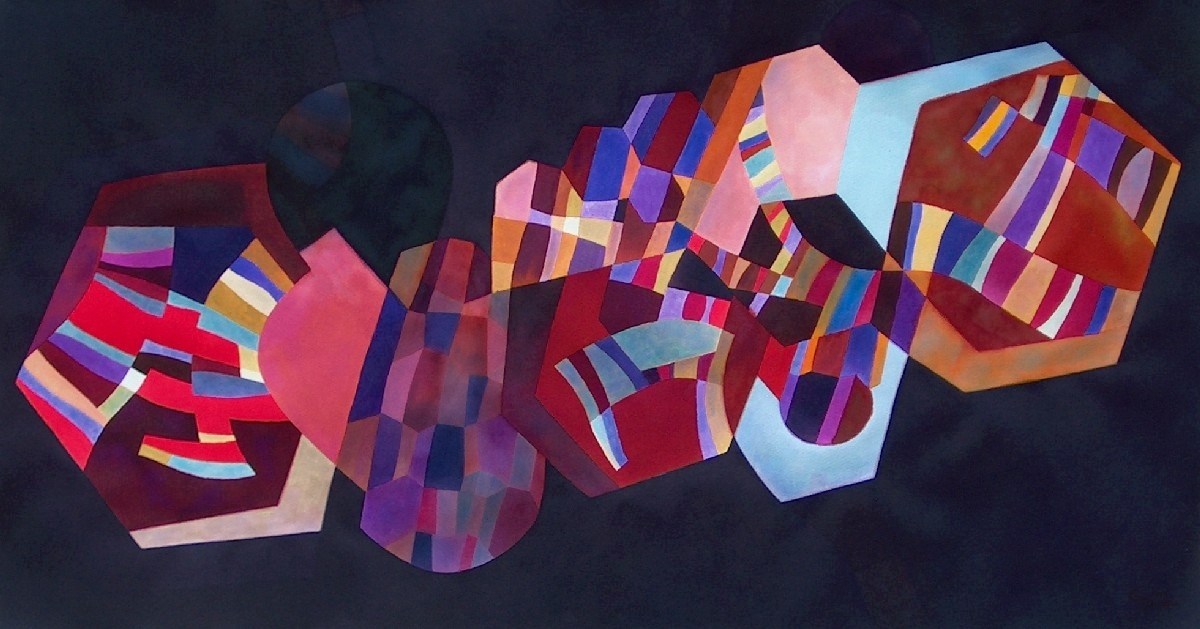 P013b Hexagones en diagonale - Diagonally hexagons, 1991, Ecoline, 63 x 108 cm
