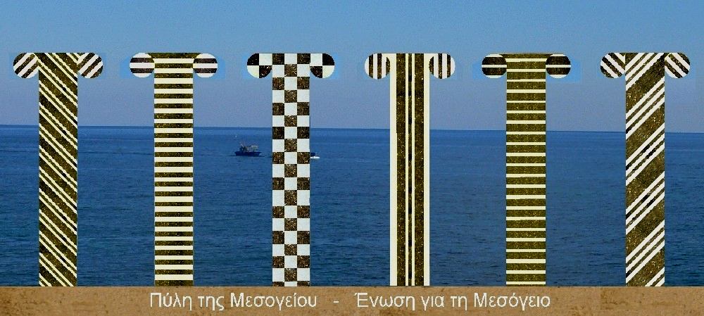 Portique ionique, piliers de section carrée, marqueterie recto verso, projet