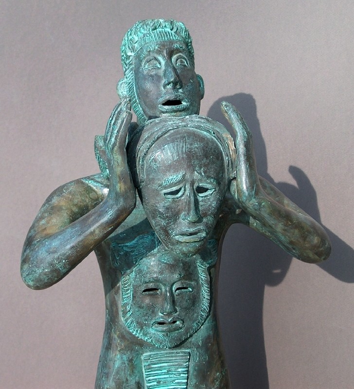 En dessous : S113 Implorant aux masques - Imploring figure with masks, 1995-2004, bronze, h. 62 cm