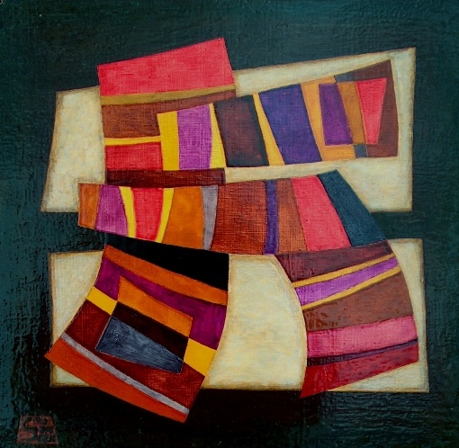 P036b Sensation psychique, Psychical feeling, 1997, huile sur bois, 57 x 48 cm en dessous : P012c Blason, Blazon, 1990, huile sur bois, 34 x 35 cm