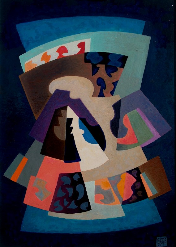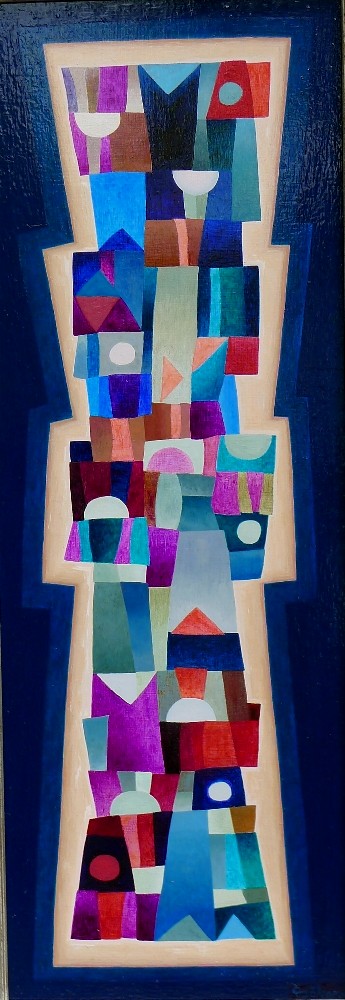 P057b Éventail, 2006, huile sur bois, 58 x 42 cm en-dessous : P020d Fétiche vert, Green fetish, Huile sur bois, 1995, 90 x 32 cm
