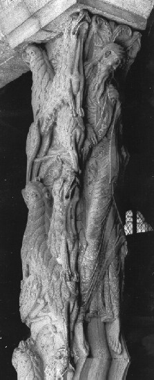 Saint-Pierre. Le taureau à tête humaine est une figure protectrice de la mythologie babylonienne; l'homme à tête d'aigle y représente un bon génie; à Ninive, des tablettes votives sont tenues par un animal mi lion mi aigle. Ces êtres hybrides intercèdent en faveur de l'homme auprès des dieux, aussi leur présence dans la théophanie d'Ézéchiel n'est pas étonnante. Quelles transformations ces chimères ne vont-elles pas subir! Chez Ézéchiel, elles se couvrent d'yeux, signe d'omniscience, et portent le trône de Dieu. Dans l'Apocalypse de Saint-Jean, elles se séparent en quatre Vivants. Quels enchantements nous devrons à leur identification par Saint-Irénée, deux cents ans plus tard, aux quatre Evangélistes, idée qui assure leur diffusion dans le monde chrétien. Le pouvoir des chiffres et l'émerveillement des coïncidences expliquent cette audace. "Il n'est pas admissible, s'exclame l'évêque de Lyon, qu'il y ait plus de quatre évangiles, ni moins de quatre non plus. Puisqu'il y a quatre régions du monde dans lequel nous sommes et quatre vents des points cardinaux... D'où il appert que le Christ artisan de l'univers, lui qui est assis sur les chérubins (les Vivants de la vision) et qui maintient tout ensemble, une fois manifesté aux hommes, nous a donné l'Evangile sous quatre formes, Evangile que maintient cependant un seul Esprit..."[1] Quels développements expressifs depuis la Théophanie du Trisagion peinte au VIe siècle dans l'abside du monastère Saint-Apollon à Baouît en Egypte, la première fresque connue, où seules les têtes des Vivants apparaissent emmitouflées dans les ailes parsemées d'yeux, en passant par les illustrations de L'évangile de Reichenau, les enluminures féeriques du Beatus de Saint-Isidore de León et celles du Beatus de Saint-Sever, jusqu'au portail de l'église abbatiale de Moissac vers 1130! L'anachronisme n'est-il pas ici retourné en une invention stupéfiante? En quoi les sculpteurs répètent-ils les fresques et les enluminures? Au lieu d'en être tributaire, ce sont les tympans de Moissac et de Chartres qui dominent la vision de Saint-Jean par la tension stylisée des corps, le retournement superbe des têtes, la dimension imposante. Ne devons-nous pas être reconnaissants envers l'exaltation et les comparaisons sommaires qui sont à l'origine de figures que l'art vient légitimer à sa façon? N’est-il pas judicieux d'en tenir compte? Nombreux répondront: cet art appartient au christianisme, le Moyen Âge vénérait les prophètes, Jésus, les apôtres; architectes, enlumineurs, sculpteurs ne poursuivaient qu'un but, parfaire les formes de cette vénération.