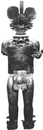 Notre attirance pour les allégories de la mort, de l'enfer et du jugement dernier a encore une autre dimension. Ce que nous éprouvons devant ces tableaux ressemble à l'effroi devant le sacré que Rudolph Otto a décrit dans son ouvrage Le Sacré. Il en a relevé les composantes : le tremendum, la terreur qu'inspire l'ira, le courroux de Dieu, le sentiment de n'être qu'une créature devant l'absolue supériorité de la puissance, le sentiment de vulnérabilité devant la volonté divine, le Numen. Ces émotions négatives sont étroitement mêlées à une attirance qui s'explique par un autre pouvoir du sacré, le fascinant. Sans doute, la terreur devait l'emporter dans les temps les plus lointains, mais l'attirance devait exister aussi, car comment expliquer autrement le culte rendu aux dieux ? La fusion des émotions contraires est perceptible dans le mot sanscrit ârâdh qui signifie au sens large rendre hommage à la divinité et au sens propre réconcilier, apaiser la colère. Mais Otto devine des manœuvres psychiques encore plus complexes : "La terreur n'explique pas que le numineux est l'objet de recherche, de convoitise, de désir, qu'il est désiré non pas seulement en vue de l'avantage naturel, de l'aide que l'on en attend, mais encore pour lui-même. Ce désir se manifeste non seulement sous la forme du culte 'rationnel', mais dans ces étranges pratiques 'sacramentelles', ces rites et ces méthodes de communion par lesquels l'homme cherche à prendre possession du numineux. A côté des manifestations et des formes normales et faciles à comprendre de l'activité religieuse, telles que pratiques propitiatoires, demandes, sacrifices, actions de grâce, qui sont au premier plan dans l'histoire des religions, se trouve une série de choses étranges qui attirent de plus en plus l'attention et dans lesquelles on croit pouvoir reconnaître, à côté de la simple religion, les racines du 'mysticisme'. Au moyen d'une quantité d'actes étranges et de formes fantaisistes de médiation, l'homme religieux cherche à se rendre maître de la réalité mystérieuse elle-même, à s'en pénétrer et jusqu'à s'identifier avec elle. (...) Sans doute, à l'origine, les moyens étaient ici purement magiques et l'intention première était de s'approprier la force prodigieuse du numen en vue de buts ''naturels'. Mais on n'en reste pas là. La possession du numen et la prise de possession par lui deviennent en elles-mêmes des buts, sont recherchées pour elles-mêmes, à l'aide des procédés les plus raffinés et les plus sauvages de l'ascétisme. La vita religiosa commence. Demeurer dans ces étranges et souvent bizarres états de possession numineuse devient en soi un bien, et même un salut, qui est complètement différent des biens profanes obtenus par la magie."[1] Otto estime que le sacré - le numineux - est une manifestation du divin, qu'il prouve l'existence de Dieu. Nous ne sommes pas obligés de le suivre jusqu'à ce point. Pour nous, le sens du sacré fait partie de la panoplie des émotions humaines. Il n'est pas nécessaire de croire en Dieu pour éprouver l'effroi devant l'immensité qui nous échappe ou la vénération devant les phénomènes admirables et étonnants de la nature, mais aussi l'effroi devant l'impétuosité, l'ambition ou l'exigence du psychisme. L'insondable, l'inconnu, l'infinité du monde suffisent à expliquer pourquoi de telles émotions sont apparues. Dans une perspective darwinienne, nous devrions considérer que ces émotions ont été préservées pour leur utilité ou leur agrément. On peut considérer comme utiles l'état d'alerte et la vigilance dans lesquels nous plonge l'angoisse. Peut-on en dire autant de la volonté utopique décrite par Otto, le besoin de dominer ce qui nous subjugue. Tel cherche à posséder le numineux par l'ascèse, dit Otto, le mysterium ainsi éprouvé procure une béatitude inouïe. L'homme veut s'approprier le mystérieux, être son complice. Il espère se mettre à l'abri de son arbitraire. Toutes ces émotions remontent certainement de la profondeur de notre être devant les grands tableaux du Moyen Âge qui sont de magnifiques allégories de notre condition. La maîtrise de l'inquiétude, le plaisir de la maîtrise, ont été repérés et identifiés par Freud. La maîtrise semble un acte imaginaire pur. C'est l'ensemble de toutes ces opérations mentales destinées à conjurer la peur. Peur objective, mais amplifiée elle aussi par l'imagination. Aussi pouvons-nous continuer de nous interroger sur le bien-fondé de l'imagination. Ne nous tend- elle pas plus de pièges qu'elle nous procure d'idées utiles ? Serait-ce le plaisir réel de l'imagination qui l'a préservée, en dépit des leurres qu'elle fait miroiter devant nos yeux ? Le plaisir octroyé par les illusions ne serait-il pas nécessaire à l'homme pour lui permettre d'affronter la dure réalité ? L'augmentation de l'angoisse ne serait-elle pas le corollaire de l'exaltation du plaisir, toutes les deux découlant d'un même mécanisme amplificateur ? L'homme à tête d'animal nous fascine d'une façon toute particulière. Quand de surcroît sa dimension nous domine, l'effet est encore accru. On peut comparer à un effroi attirant le choc éprouvé devant l'Horus hiérocéphale et le dieu Khnoum des Egyptiens, devant la Chauve-souris anthropomorphisée des Zapotèques, devant le Vishnu Varaha des Hindous. La confrontation avec la statue est évidemment plus impressionnante que le regard porté sur une reproduction de vingt centimètres. Haute de deux mètres, la Chauve-souris anthropomorphisée menace notre esprit, elle nous assène la crainte de perdre notre intégrité, d'être dépossédé, soumis à une force animale dangereuse. Comment ne pas lier le sentiment de ne plus être maître de notre personne à la terreur que la volonté nous échappe bel et bien. Et aussi à la certitude que le sujet de l'être est de plus en plus énigmatique, que no