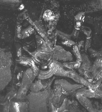 sauvant Markandeya; en Tripurantaka, brandissant son arc,